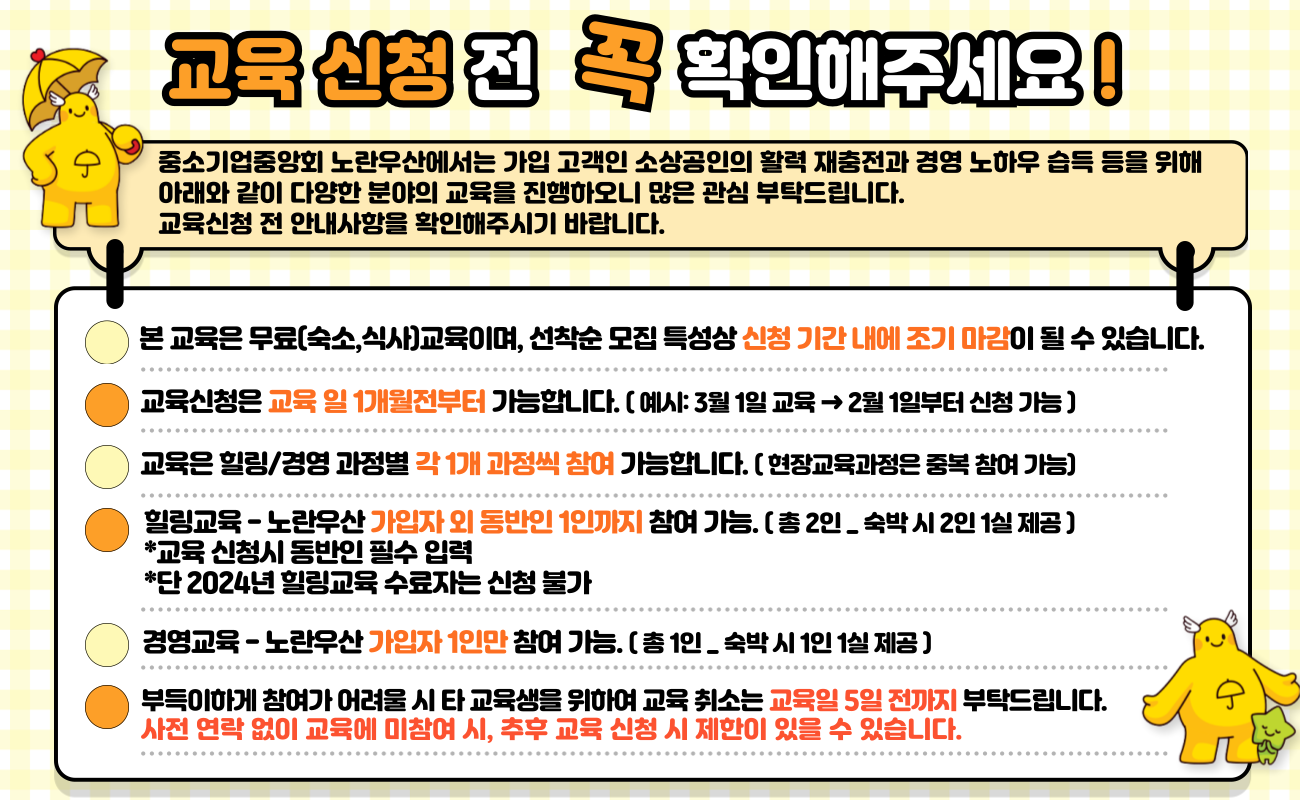 2) 교육 시작 5일 전까지만 취소 가능하오니 이 점 참고 바랍니다.