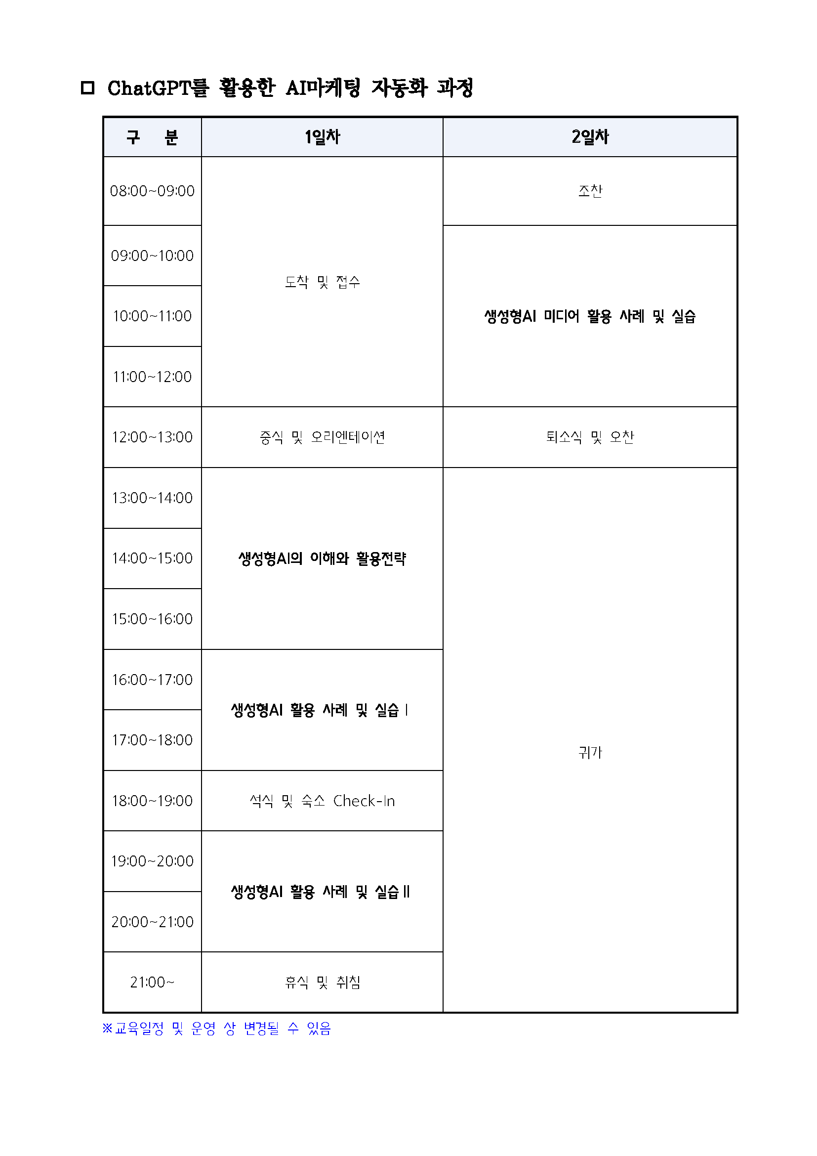 2) 교육 시작 5일 전까지만 취소 가능하오니 이 점 참고 바랍니다.