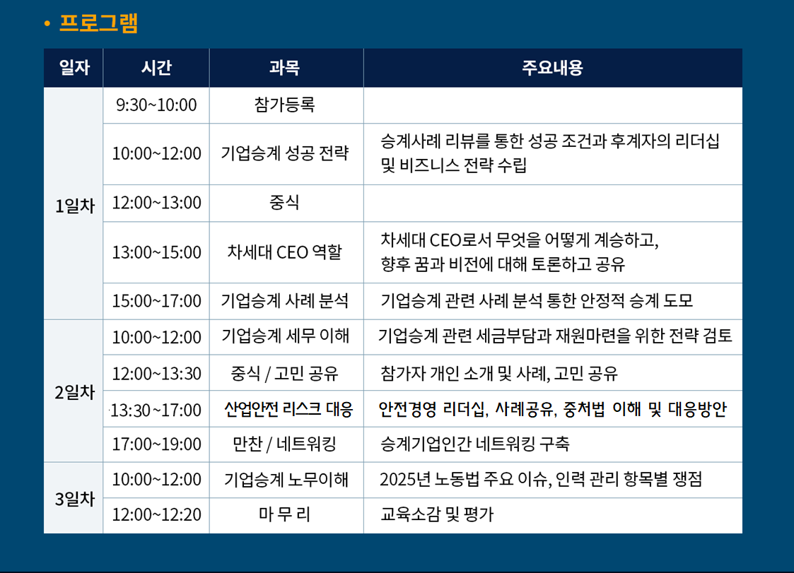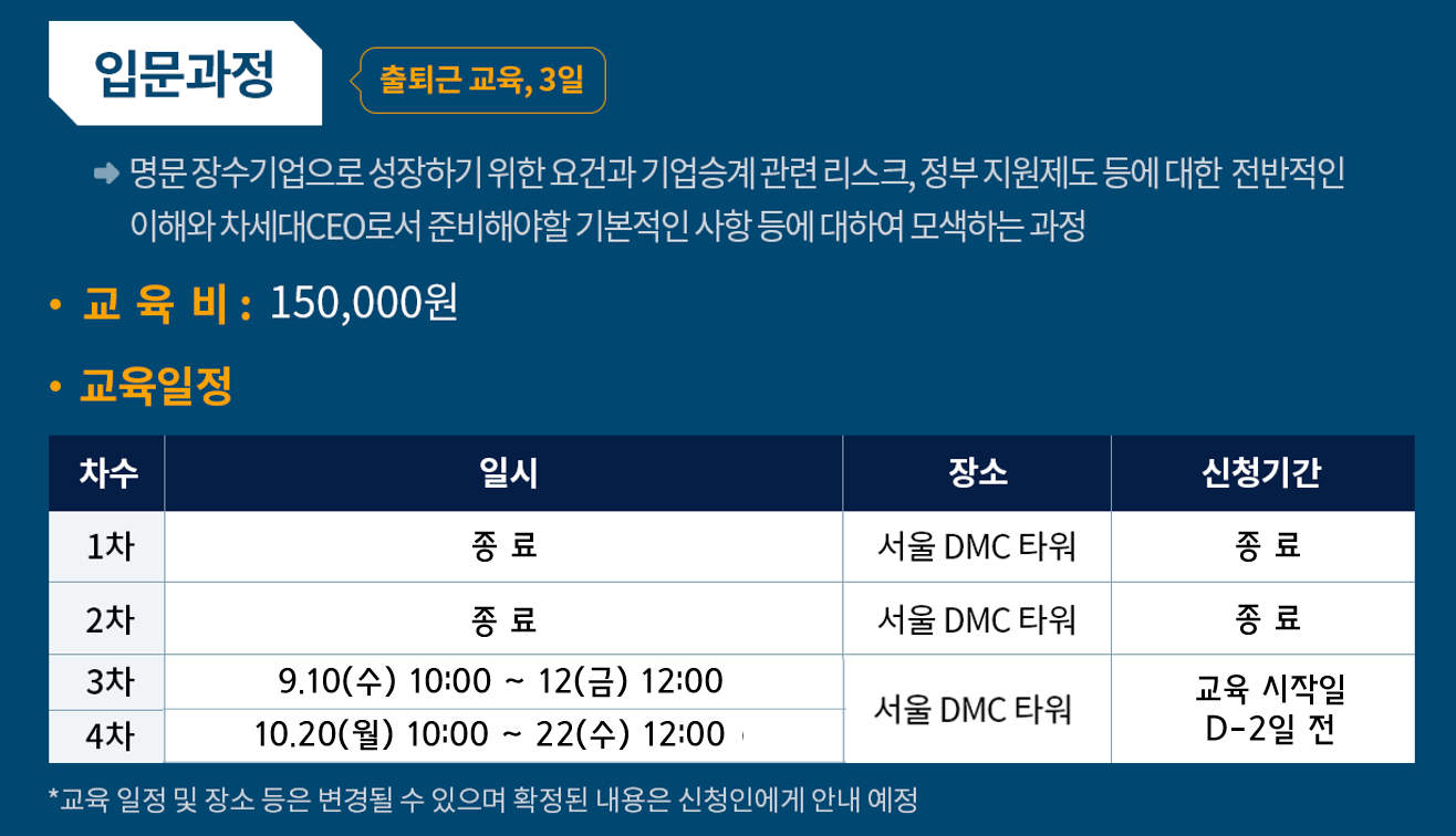 교육대상자는 내부 검토 후 수강 제한 될 수 있습니다(대상 : 중소기업 경영 2세)